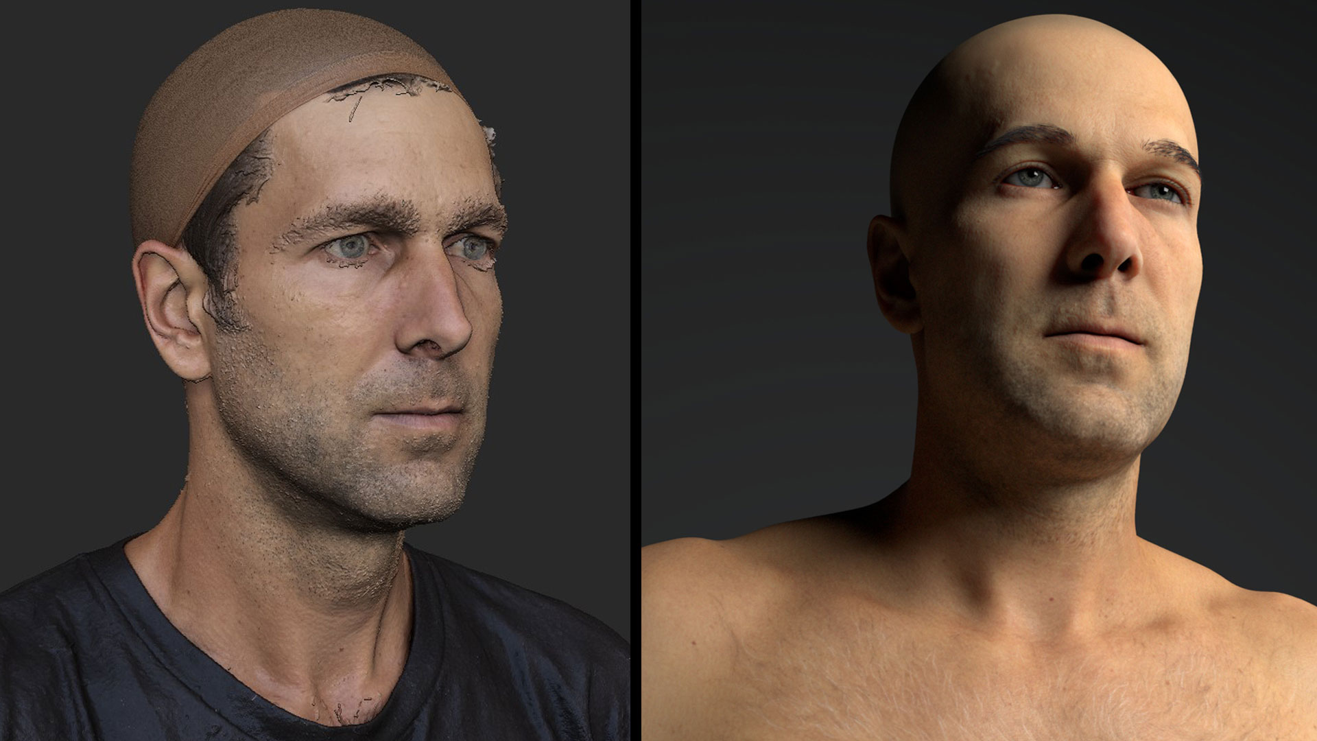 Scott demonstrates how to rebuild eyebrows so they read as intentional, integrated forms rather than baked-in scan detail. The process covers removing existing eyebrow information from the skin data, replacing it with controlled, hair-based detail, and using cloned elements to better match reference for improved form and direction. It also shows how to repaint normals and albedo so the new eyebrows sit naturally on the face, blend cleanly with the surrounding skin, and respond correctly to lighting, resulting in a more believable, production-ready facial surface.