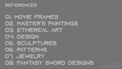 After a brief introduction, Olivier Dubard outlines the goals and structure of the lessons that follow. By presenting a creative brief and the overall workshop approach, he emphasizes that successful weapon design goes beyond appealing shapes and relies on building emotional connection through deliberate color choices, meaningful detail, and lore-based decisions. Through methodical reference gathering and grounding each creative choice in narrative purpose, Olivier demonstrates how designs can resonate with clients and elevate work from purely functional to memorable and emotionally impactful.