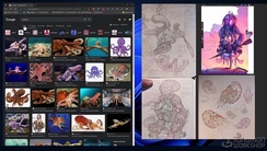 In this concept art workshop, Mike Thompson begins by gathering and organizing reference using PureRef. He demonstrates how to build a visual library of concept art, past work, and photographic references from multiple angles, providing an accessible resource to guide the entire creative process.