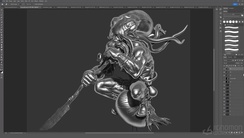 The workshop provides valuable insights into Mike’s professional pipeline for concept design that seamlessly integrates 3D sculpting and ZBrush polypainting with traditional painting techniques in Photoshop for commercial projects. His skills will greatly benefit those who not only want to get better at character work but also learn to composite their pieces to better communicate ideas to clients.