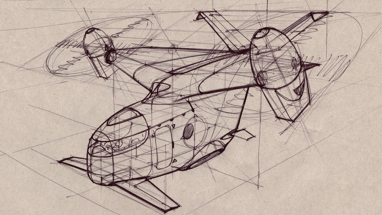 Scott Robertson begins his workshop with a lesson that demonstrates how successful aircraft design drawing relies on strong foundational perspective techniques and construction methodology rather than just capturing silhouettes. He emphasizes that even stylized, toy-like aircraft designs require rigorous application of vanishing points, cross-sections, and construction lines to create believable three-dimensional forms. Whether working quickly or in detail, these fundamental principles remain constant and are essential for problem-solving the complex intersections and volumes in vehicle design.