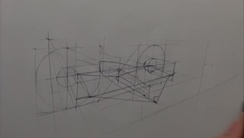 This lesson shows that, even when using tools such as underlays or 3D models for reference, fundamental drawing skills — including perspective construction, centerlines, and geometric thinking — remain essential. His sketch serves as a working drawing that can be refined into a tight-line drawing suitable for rendering. His iterative process of roughing out forms, solving intersections, and gradually adding detail illustrates how industrial designers develop concepts from initial proportions to detailed technical sketches.