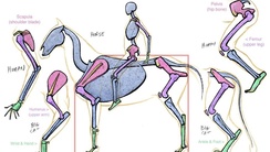 This lesson examines hind leg anatomy, teaching artists to 'see' underlying structures like X-ray vision. By focusing on simplified anatomical groupings and the leg’s functional role as a lever and support system, artists learn to design forms informed by movement, propulsion, and purpose rather than rote copying or terminology.