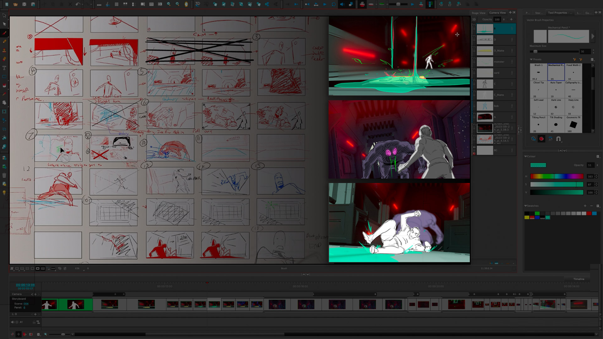 - How to refine rough concepts through multiple passes into polished storyboard sequences.