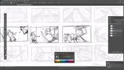 Included with this workshop are Rembert’s working files, including a PSD with full boards and his 4 PSD animatic files for you to dissect and better understand his approach. JPGs are also provided to show the various storyboard sheets.