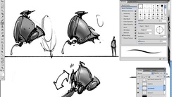In this lesson, Marc evaluates and begins to further develop his ink over illustrations in Photoshop for his robot concept, focusing on principles of light and value to help describe the object and its silhouette. By understanding how light interacts with three-dimensional forms and working methodically from mid-tones to extremes, he shows how artists can render virtually anything they can imagine.
